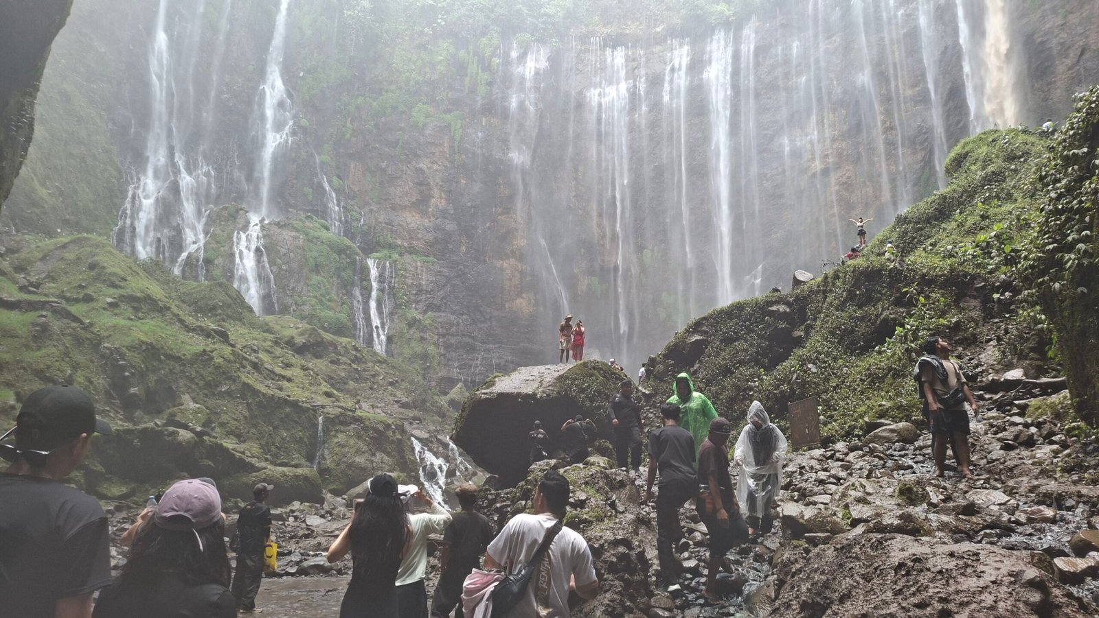 Wisatawan memadati kawasan wisata Air Terjun Tumpak Sewu pada Senin di awal Januari 2026. Meski hari kerja, para pengunjung tetap menuruni jalur …