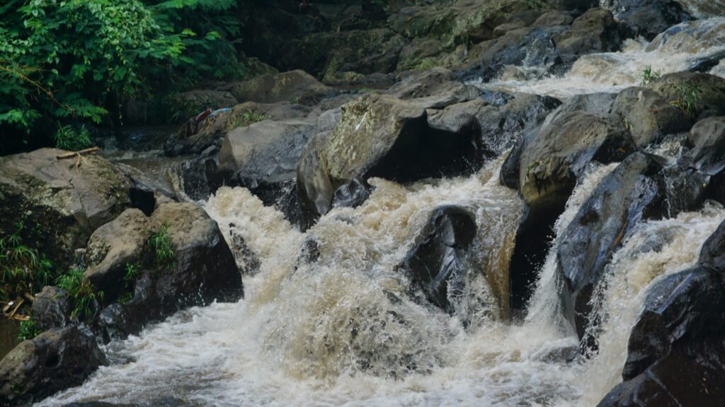 Perjalanan ini terasa menyenangkan karena setiap langkah menghadirkan pemandangan yang berbeda. Dari aliran air kecil, bebatuan alami, hingga suara air terjun yang mulai terdengar dari kejauhan.