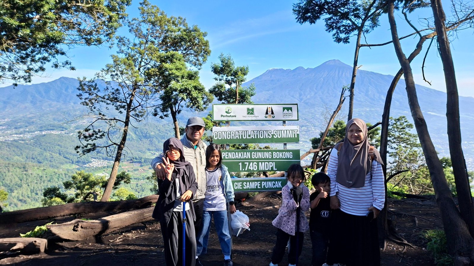 Setibanya di puncak Gunung Bokong pada ketinggian 1.746 meter di atas permukaan laut, rasa lelah terbayar lunas. Senyum sumringah terpancar dari wajah seluruh anggota keluarga saat melihat hamparan pemandangan yang terbuka luas. Dari puncak, gagahnya Gunung Arjuno tampak jelas dengan cuaca yang cerah, menambah kesan istimewa pada momen tersebut.