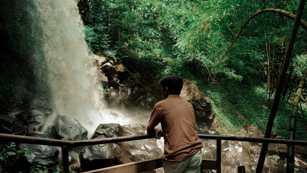 Jauh dari kebisingan kota, suasana di sekitar air terjun terasa lebih hening. Suara alam seperti aliran air dan hembusan angin menjadi latar yang menenangkan pikiran.