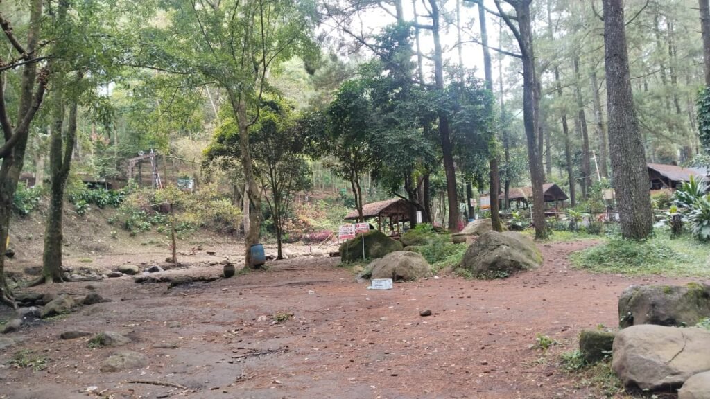 Begitu memasuki kawasan ini, suasana sejuk langsung terasa. Pepohonan pinus yang menjulang tinggi menciptakan bayangan alami yang membuat area tetap teduh, bahkan saat siang hari. Udara yang segar dan bersih memberikan kesan pertama yang menenangkan.
