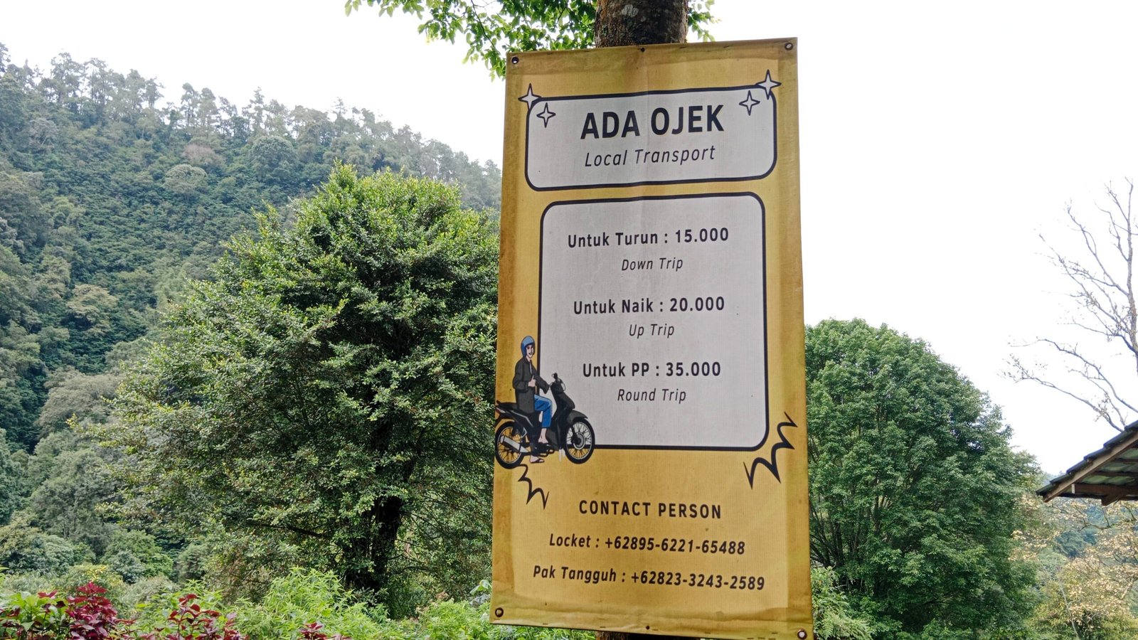 Fasilitas yang tersedia ini menunjukkan bagaimana destinasi wisata beradaptasi dengan kebutuhan wisatawan modern. Kemudahan akses kini menjadi faktor penting yang menarik minat pengunjung. Di balik kenyamanan itu, nilai kearifan lokal tetap terjaga. Warga setempat mengelola jasa ojek, seperti terlihat dari kontak “Pak Tangguh” di spanduk, sebagai bentuk pemberdayaan ekonomi masyarakat sekitar.