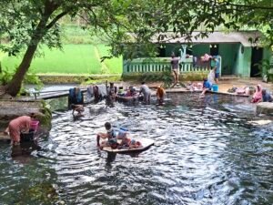 Momen Langka Pengunjung Berendam dan Warga Mencuci di Sumber Taman Sidomakmur