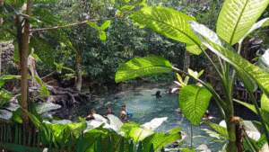 Pengunjung tampak memenuhi area kolam utama. Anak-anak bermain air di bagian dangkal, sementara orang dewasa memilih berenang di bagian yang lebih dalam. Aktivitas mereka menciptakan suasana yang ramai namun tetap tertib. Banyak keluarga menghabiskan waktu bersama dengan duduk di pinggir kolam, mengawasi anak-anak, atau sekadar menikmati udara segar kawasan sumber Umbulan.