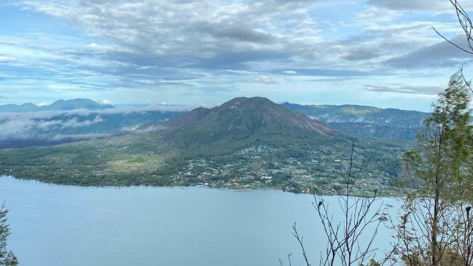 View ketika kabut tipis menggantung di atas Danau Batur, siluet Gunung Abang perlahan muncul dari balik cahaya keemasan matahari. Dari Bukit Trunyan, pemandangan itu terasa begitu dekat seolah gunung megah itu sedang menyapa siapa pun yang berdiri di punggung bukitnya. Angin dataran tinggi membawa aroma tanah basah, membuat langkah terasa ringan, sementara garis-garis cahaya mulai menyingkap lekuk-lekuk hijau di lereng Abang. Setiap detik yang berlalu menambah pesona, membuat Sora sulit memalingkan pandangan.